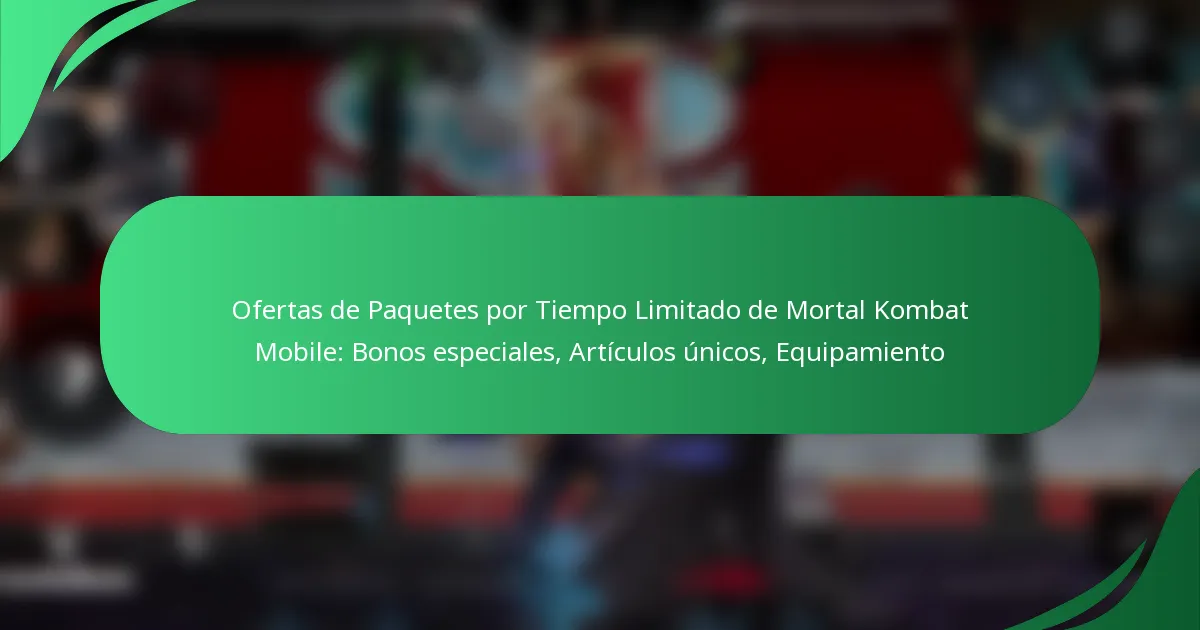 Las Ofertas de Paquetes de Tiempo Limitado de Mortal Kombat Mobile son promociones exclusivas que brindan a los jugadores artículos únicos, bonificaciones y equipo por un corto período. Estos paquetes...