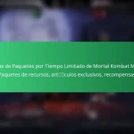 Los paquetes por tiempo limitado en Mortal Kombat Mobile ofrecen una variedad de recompensas de eventos que mejoran la jugabilidad y el desarrollo del personaje. Estos paquetes típicamente incluyen personajes exclusivos, skins únicos y artículos especiales que pueden impactar significativamente tu experiencia de juego.