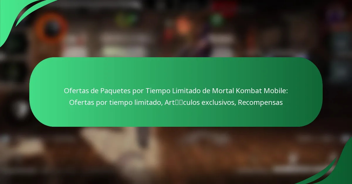 Las Ofertas de Paquetes Limitados de Mortal Kombat Mobile presentan a los jugadores recompensas exclusivas, incluyendo fragmentos de personajes y artículos únicos, disponibles por un corto período. Es...