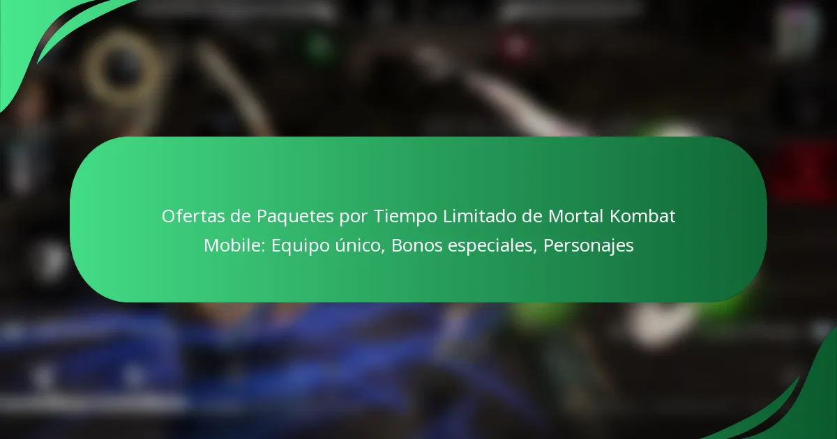 Las Ofertas de Paquetes de Tiempo Limitado de Mortal Kombat Mobile presentan a los jugadores con paquetes promocionales exclusivos disponibles por un corto periodo. Estos paquetes suelen incluir perso...